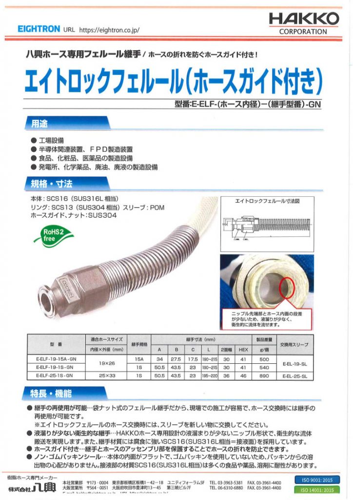 工場設備配管・機械組込み用ホース継手